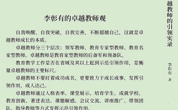 《卓越教师的引领实录》自序以及解读《卓越教师的引领实录》自序在华夏五千年历史文化传承中,人之一生当以向着“立德、立功、立