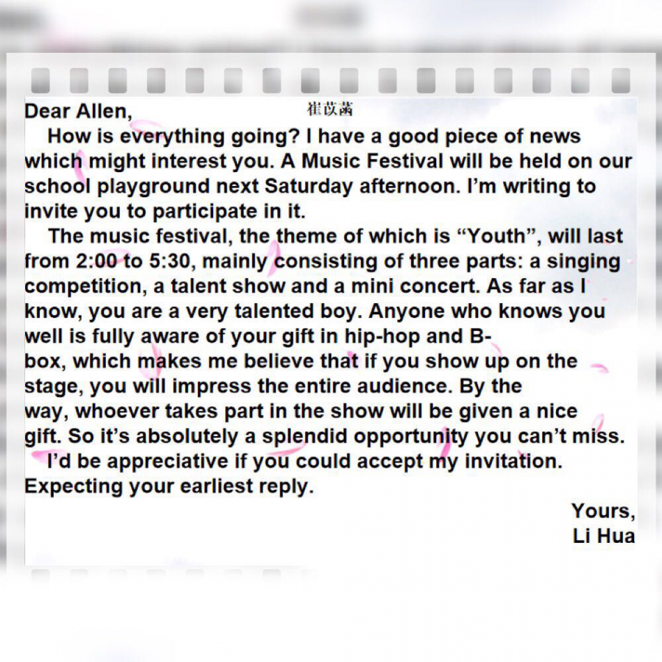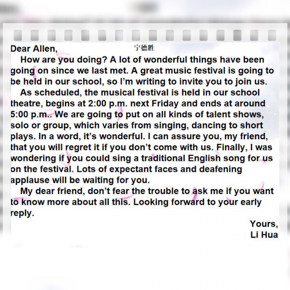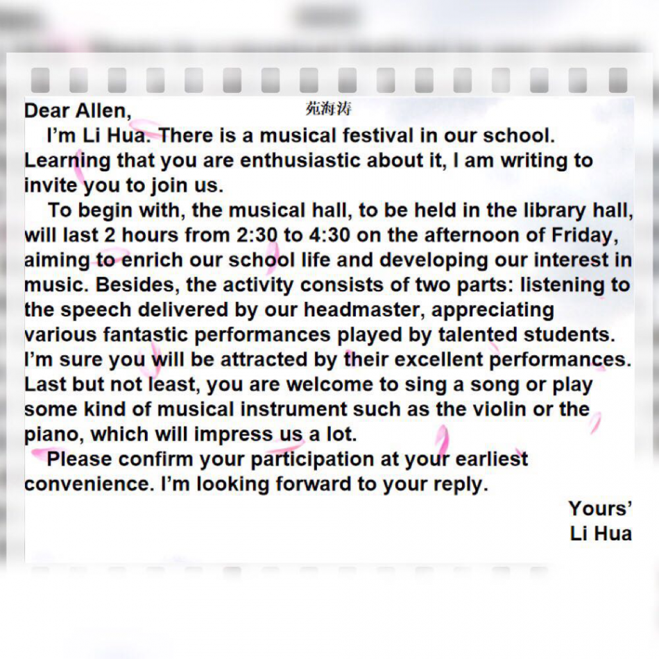 这样的书面表达题体现了英语学科的本质是工具性和人文性的辨证统一。新课标明确指出,英语课程既具有工具性又具有人文性特征,它对促进学生的人生发展具有重要意义,也对国家民族的发展具有重要意义。就工具性而言,英语课程承担培养学生基本英语素养的任务,即学生通过英语课程掌握基本的英语语言知识,发展基本的英语听说读写技能,形成用英语与他人交流的能力,为今后继续学习英语和用英语学习其他相关科学文化知识奠定基础。就人文性而言,英语课程承担着提高学生综合人文素养的任务,即学生通过英语课程能够开阔视野,丰富生活经历,发展跨文化意识,促进创新思维,形成良好品格和正确价值观,为终身学习奠定基础。
