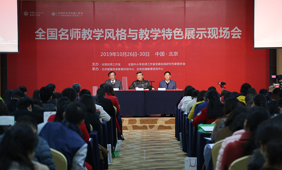 2019年10月26日-30日,北京中教市培教育研究院、全国中小学名师工作室发展实践研究专家委员会主办的《全国名师工作室教学风格与教学特色展示现场会》在北京举行。参加会议的有全国各名师工作室主持人及其成员、一线教师、校长、教学主任、教研员、教研机构主管主任及各地参会代表。他们秉承共融、共研、共享的理念,为落实立德树人根本任务,相互学习、相互交流而来。本次会议既是对各地课堂教学发展成果的交流、切磋、学习、借鉴,同时也是构建基于深度学习的名师新课堂课例研修专场。