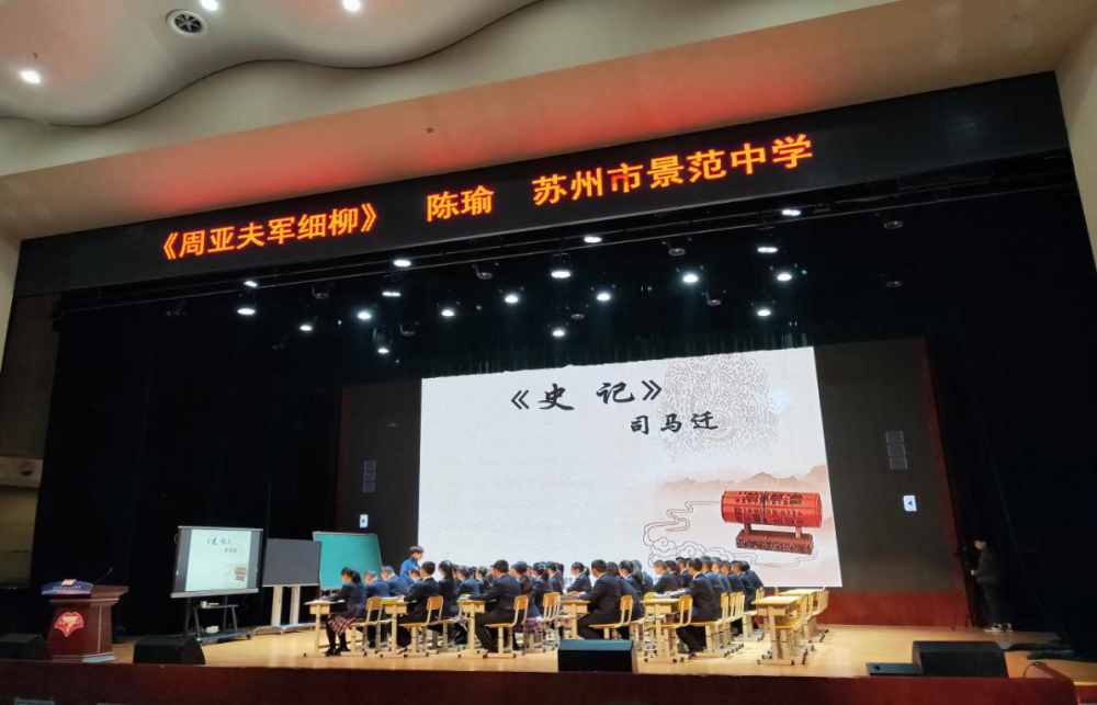 11月29日上午,学员赴成都七中音乐厅语文课现场展示及主题对话分会场,观摩了苏州市景范中学陈瑜老师与成都七中初中李继志老师带来的同课异构部编版八年级上册《周亚夫军细柳》。陈瑜老师围绕课文中文帝对周亚夫的评价“此真将军矣”,从“由军士鉴真”、“由将军鉴真”和“由文帝鉴真”三个方面带领学生层层深入理解周亚夫不卑不亢、刚正不阿的人物形象。李继志老师从“题目之辨”、“亚夫之治”、“史迁之笔”和“史记之论”四个教学活动着手,激发学生兴趣,完成人物形象分析,了解司马迁塑造人物的常用手法,品析司马迁的伟大与名著《史记》之不朽。两位老师各具智慧、精彩纷呈的课堂教学给听课老师留下了深刻的印象。