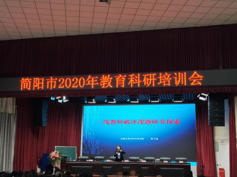 上午首先是成都市教育科学研究院的陈宇燕老师给大家做了《一线教师破冰课题研究探索》的培训,分别从一线教师为什么要做课题研究;一线教师日常的无意识研究和一线教师如何开展课题研究三方面进行了讲解,为一线教师课题研究指明了方向。接着简阳市中小学教学研究室课题室主任胡利彬对大家进行了《规范管理提升教育科研水平》的培训。胡利彬老师分别从工作目标、工作重点、课题管理、考核评估和工作要求几个方面给大家阐明了课题研究的要求。