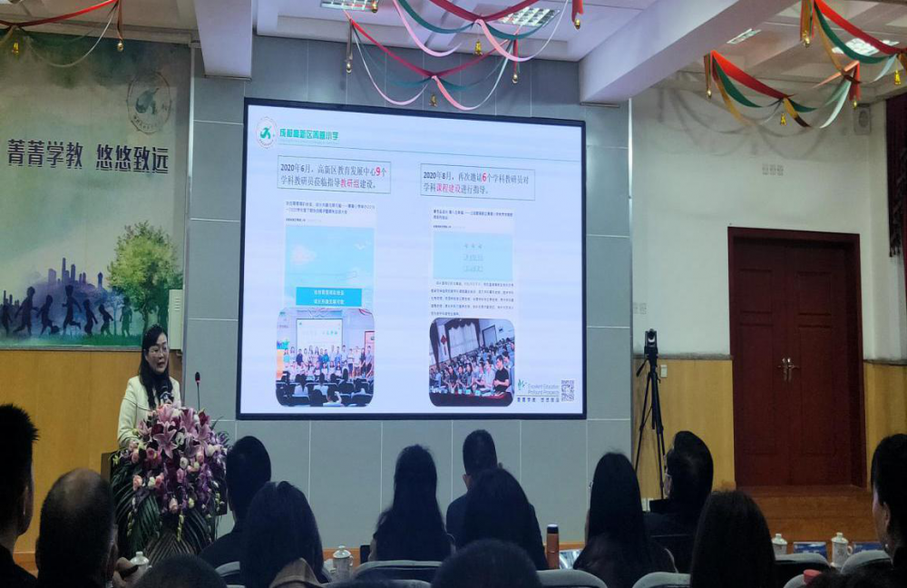 四川省特级教师、四川省中小学名校长、菁蓉小学校长陈曦作《依托“三名工作室”培育学校核心发展力量》专题分享。她从“抓准新时代教师专业发展的战略机遇、聚焦核心发展力勾勒工作室发展愿景、培育核心发展力的路径选择”三方面阐述“三名工作室”培育学校核心发展力量。