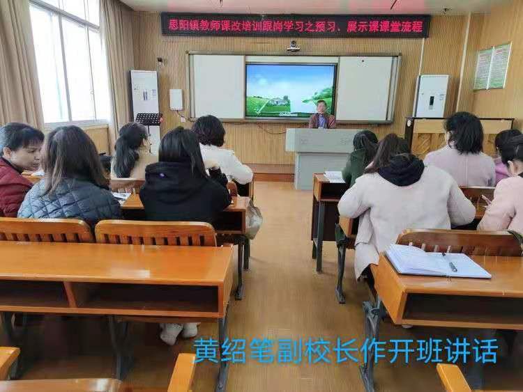 开班仪式上,思阳镇中心小学的业务副校长黄绍笔作了开班讲话,唐凯英名师工作室的领衔人唐凯英、成员黎小雪两位导师分别作了开班发言,给予思阳镇中心小学的教师们课改的信心与期望!