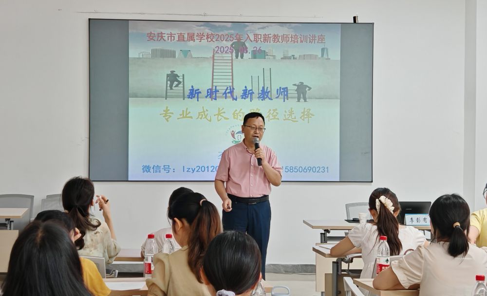 (七)通过培训新教师去“摇动”。新教师是未来教育发展的主力军。2025年为南京市市直学校新教师、安庆市2025年入职新教师、合肥瑶海区新进教师开设《新时代新教师专业成长的路径与基本功修炼》《引领学生共享成长的快乐》等专题培训。