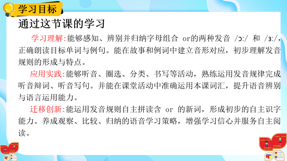 1. 以情境为基,通过动画、互动游戏还原生活场景(如家务劳动等),落实新课标“真实语境中学习语言”的要求;