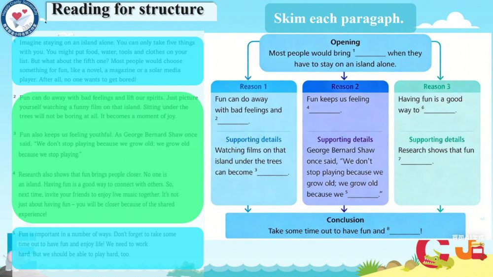 本期我们将推出由崔根萍、庄楠楠团队宋梦颖老师精心打磨的Unit 4 The art of having fun Period 1(Reading)希沃教学课件。让我们携手共进,一同探索英语教学的无限可能!期待与您共同成长,让英语课堂绽放更多精彩!