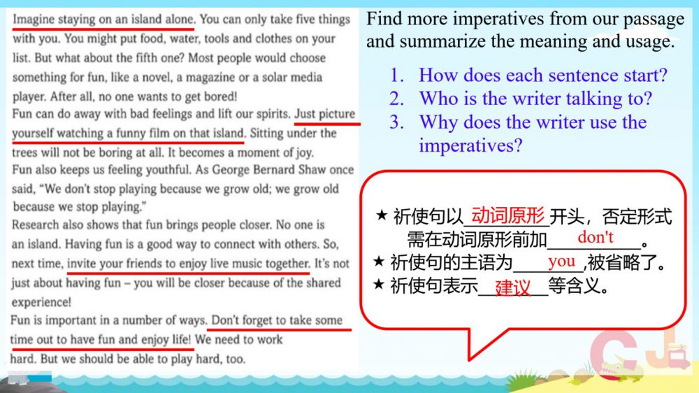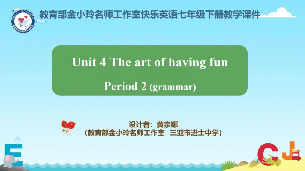 本期我们将推出由崔根萍、庄楠楠团队黄宗娜老师精心打磨的Unit 4 The art of having fun Period 2(Grammar)希沃教学课件。让我们携手共进,一同探索英语教学的无限可能!期待与您共同成长,让英语课堂绽放更多精彩!