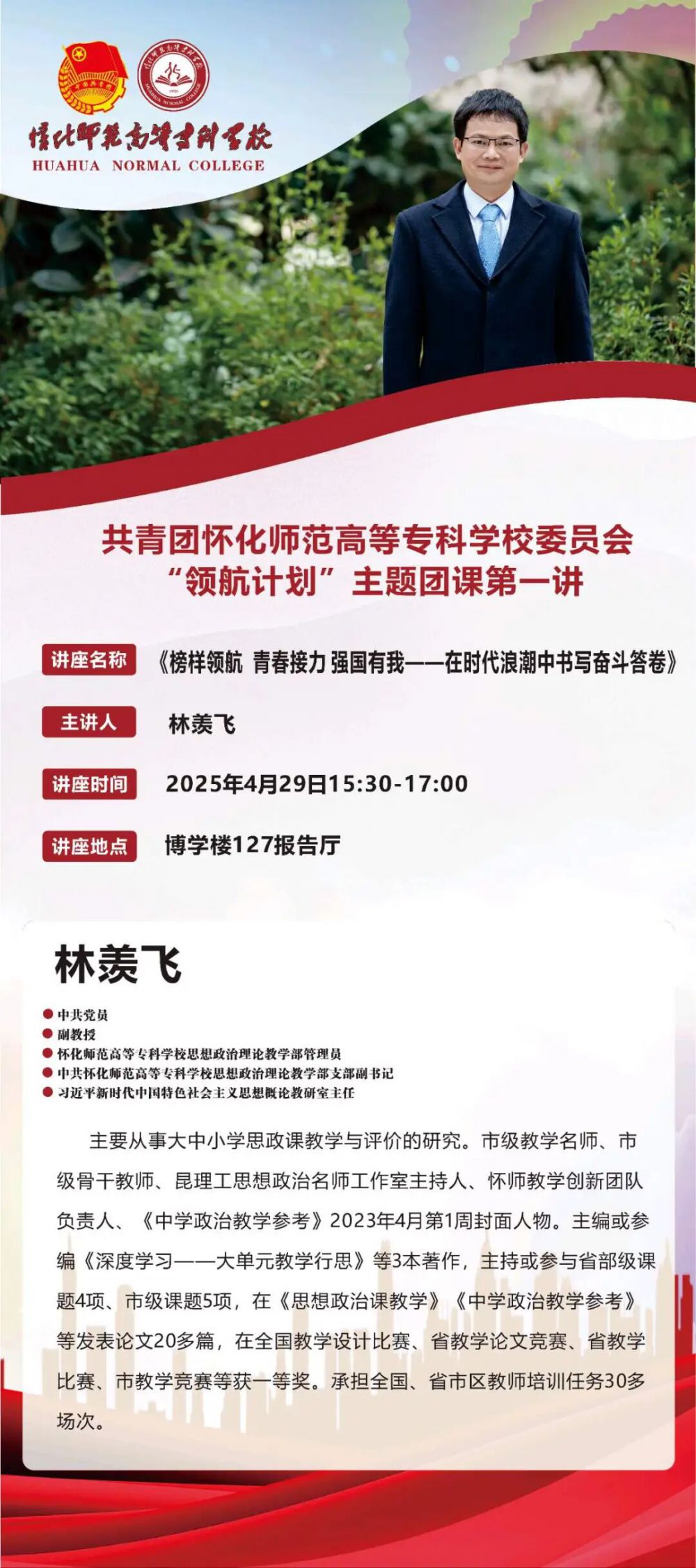 林羡飞,中共党员,副教授。怀化师范高等专科学校思想政治理论教学部支部副书记,习近平新时代中国特色社会主义思想概论教研室主任。