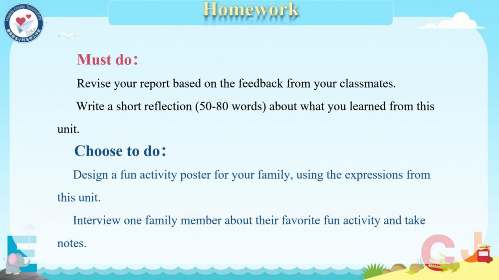 本期我们将推出由崔根萍、庄楠楠团队曹晶老师精心打磨的Unit 4 The art of having fun Period 6 (Presenting ideas & Reflection) 希沃教学课件。让我们携手共进,一同探索英语教学的无限可能!期待与您共同成长,让英语课堂绽放更多精彩!