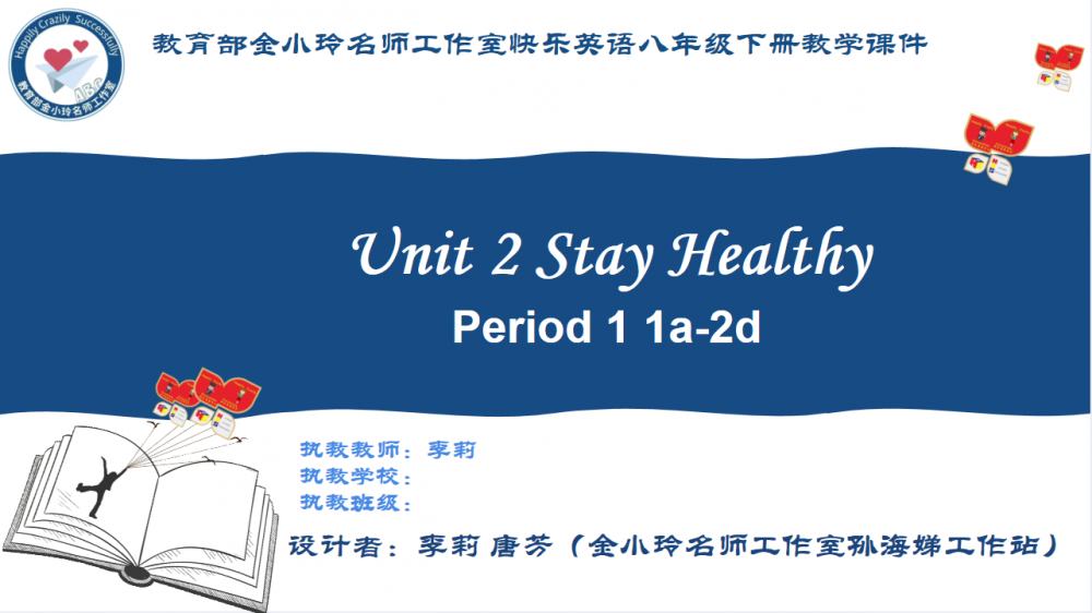 本期推出的优秀课件是教育部金小玲名师工作室孙海娣工作站李莉、唐芳老师带来的新教材人教版八年级下册 Unit2 Stay Healthy Period1 Section A 1a-2d希沃教学课件。让我们一同开启这段生动有趣的英语教学新旅程!